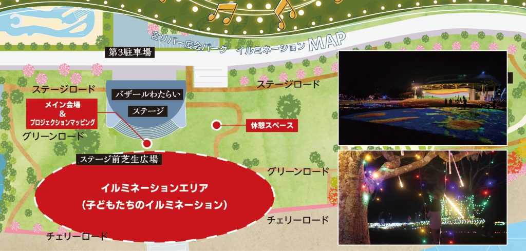 「宮リバーイルミネーションプロジェクト2024」は度会町に住む 小学生・中学生・高校生たちが、度会町をもりあげようと「宮リバー度会パーク」のイルミネーションに挑戦するプロジェクトの第2弾です!5万個のLEDやプロジェクションマッピングで彩ります。
